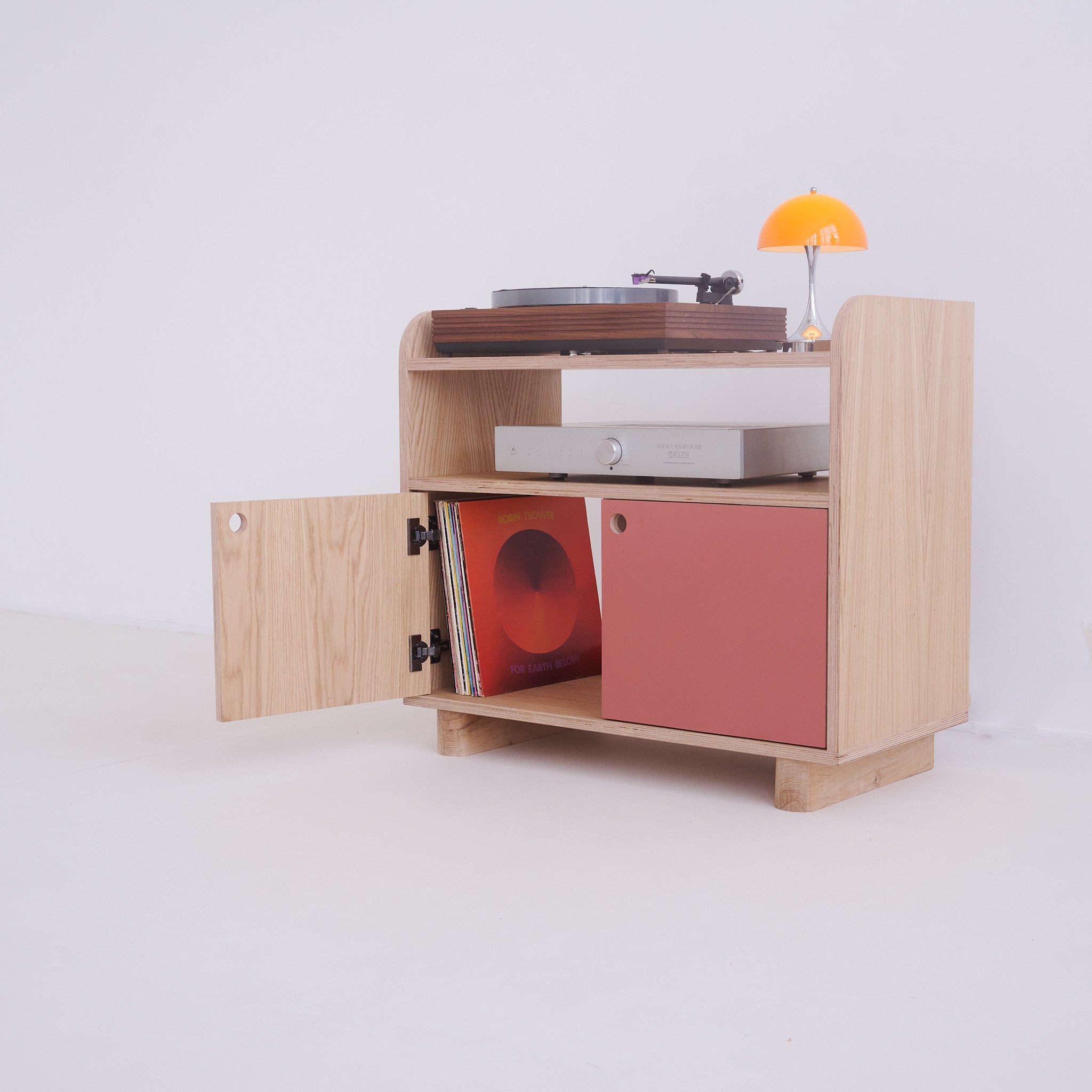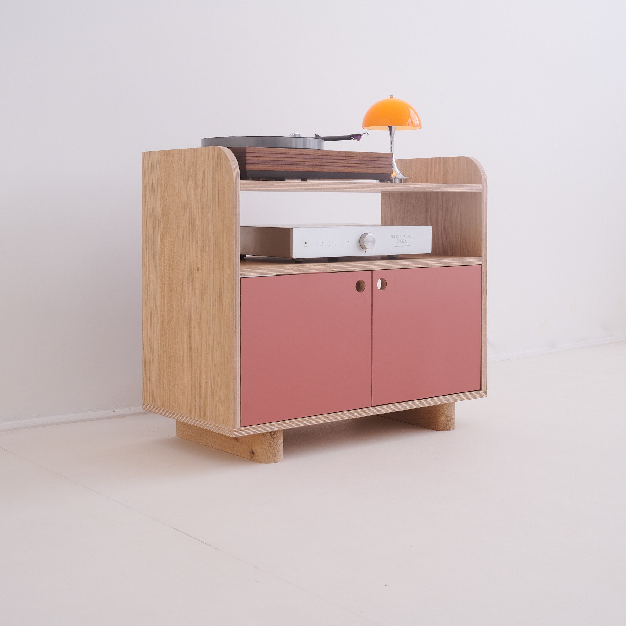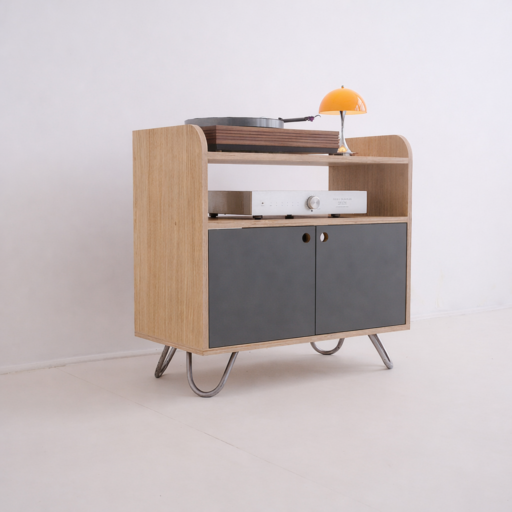 Arc Hi-Fi Cabinet | [Oak Veneered Birch Ply] Record Player Stand with Formica® Doors | Turntable Stand | Vinyl Storage Console